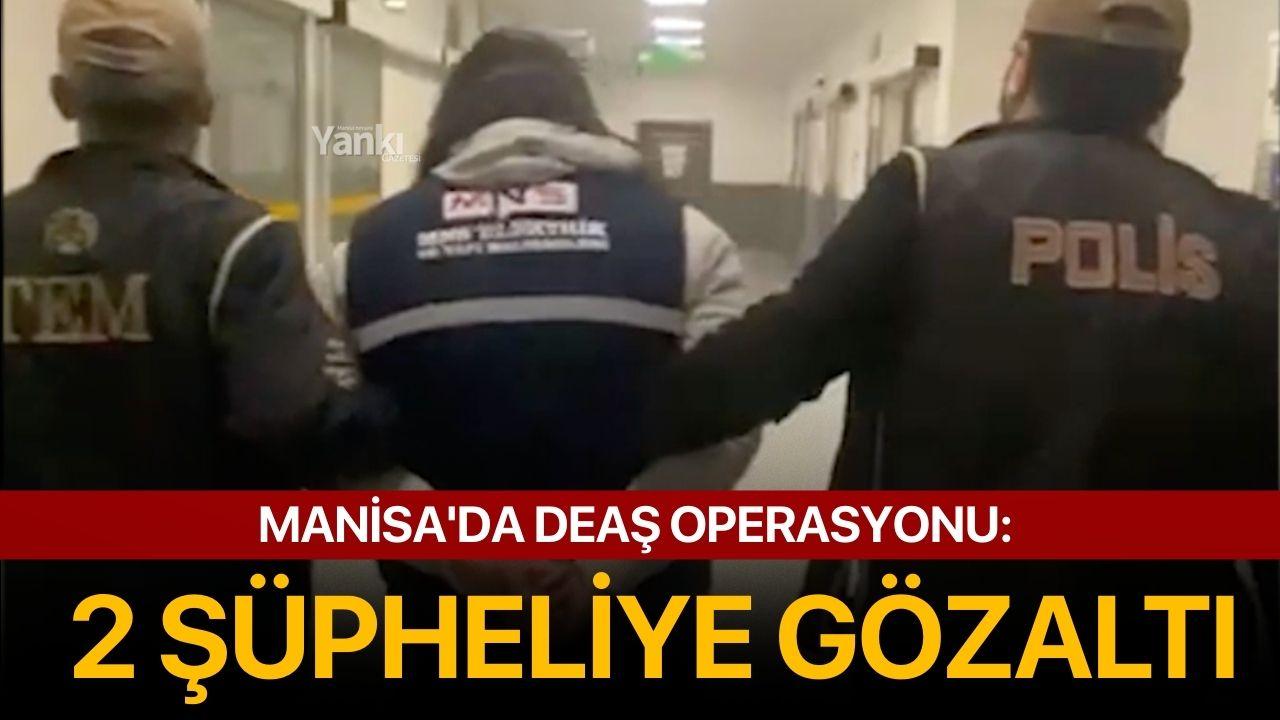 MANİSA'da polis ekiplerince terör örgütü DEAŞ'a yönelik operasyonda, Yalova'daki örgüt üyeleriyle bağlantılı oldukları iddiasıyla 2 şüpheli gözaltına alındı.