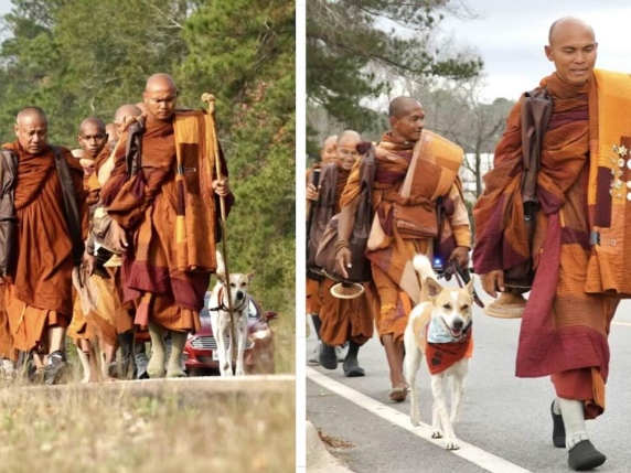 È un trovatello che si è unito al gruppo di monaci in una recente marcia di fratellanza in India. Ora un gruppo di religiosi, guidato dal cane da salvataggio, sta camminando verso Washington attraverso 10 Stati per 110 giorni