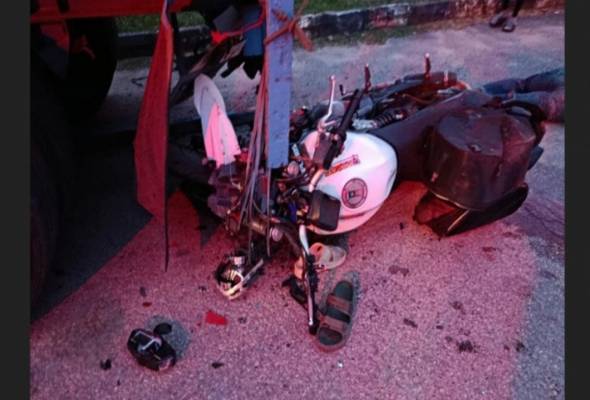 Motosikal jenis Benelli TNT300 ditunggang mangsa dipercayai hilang kawalan apabila dikejar anjing dan telah masuk ke laluan bertentangan sebelum melanggar bahagian belakang lori.