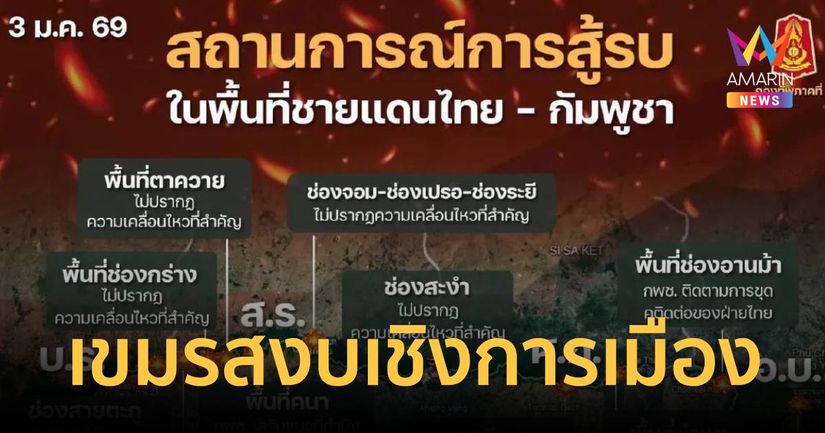 กองทัพภาค2สรุปสถานการณ์ชายแดน"กัมพูชา"สงบเชิงการเมือง แต่"ตึง"ในเชิงทหาร ใช้การหยุดยิงเป็นฉากหน้า เบื้องหลังเดินเกมข่าวกรอง-เสริมกำลัง-ปรับปรุงที่มั่น
