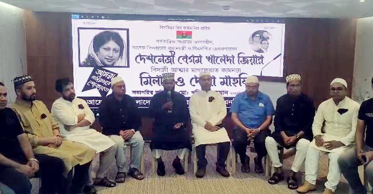 তিনবারের সাবেক প্রধানমন্ত্রী ও বাংলাদেশ জাতীয়তাবাদী দলের (বিএনপি) চেয়ারপারসন বেগম খালেদা জিয়ার রুহের মাগফিরাত কামনায় মালদ্বীপ বিএনপির উদ্যোগে মিলাদ ও দোয়া মাহফিল অনুষ্ঠিত হয়েছে। শনিবার (৩ জানুয়ারি) সন্ধ্যায় মালদ্বীপের রাজধানী মালের একটি রেস্টুরেন্টে এ মিলাদ ও দোয়া মাহফিল অনুষ্ঠিত হয়। অনুষ্ঠানের শুরুতে পবিত্র কুরআন তিলাওয়াত করা হয়। দোয়া মাহফিলে মালদ্বীপ বিএনপির সভাপতি খলিলুর রহমানের সভাপতিত্বে এবং সাধারণ সম্পাদক জহিরুল ইসলাম সঞ্চালনায় সংক্ষিপ্ত আলোচনা অনুষ্ঠিত হয়। আলোচনায় বক্তারা মরহুমা বেগম খালেদা জিয়ার রাজনৈতিক সংগ্রাম, গণতন্ত্র পুনরুদ্ধারে তার অবদান এবং আপসহীন নেতৃত্বের কথা গভীর শ্রদ্ধার সঙ্গে স্মরণ করেন। সভাপতির বক্তব্যে খলিলুর রহমান বলেন, দেশ ও জাতির জন্য সাবেক তিনবারের প্রধানমন্ত্রী দেশনেত্রী বেগম খালেদা জিয়ার ত্যাগ ও ভূমিকা ইতিহাসে চিরস্মরণীয় হয়ে থাকবে। তিনি প্রবাসেও তার আদর্শ ও রাজনৈতিক চেতনা ধারণ করে ঐক্যবদ্ধভাবে সংগঠিত থাকার আহ্বান জানান। মিলাদ ও বিশেষ মোনাজাত পরিচালনা করেন মালদ্বীপ বিএনপির ধর্ম সম্পাদক মাসুম বিল্লাহ। মোনাজাতে মরহুমা বেগম খালেদা জিয়ার বিদেহী আত্মার মাগফিরাত কামনার পাশাপাশি দেশের গণতন্ত্র, শান্তি ও সমৃদ্ধি কামনা করে দোয়া করা হয়। দোয়া মাহফিলে মালদ্বীপ বিএনপির সিনিয়র সহ-সভাপতি নেহে মিয়া রানা, সহ-সভাপতি বাবুল হোসেন, সহ-সভাপতি ফারুক হোসেন ফেনী, যুগ্ম সাধারণ সম্পাদক, শরিফুল ইসলাম, রবিউল আলম, সাংগঠনিক সম্পাদক, রফিকুল ইসলাম, প্রচার সম্পাদক খলিলুর রহমান শাহাজী, সহযোগী সংগঠনের বিভিন্ন পর্যায়ের নেতাকর্মী ও প্রবাসী বাংলাদেশিরা উপস্থিত ছিলেন। এমআরএম/জেআইএম