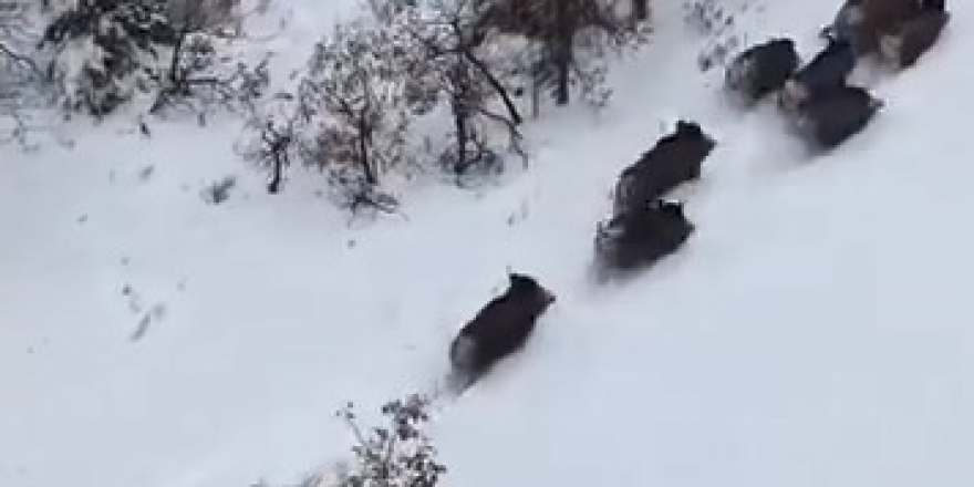 Elazığ’da Domuz Sürüsü Dron İle Görüntülendi Elazığ'ın Ağın ilçesinin yüksek rakımlı bölgesinde ağaçlık alanda gezen domuz sürüsünü görüntülendi.