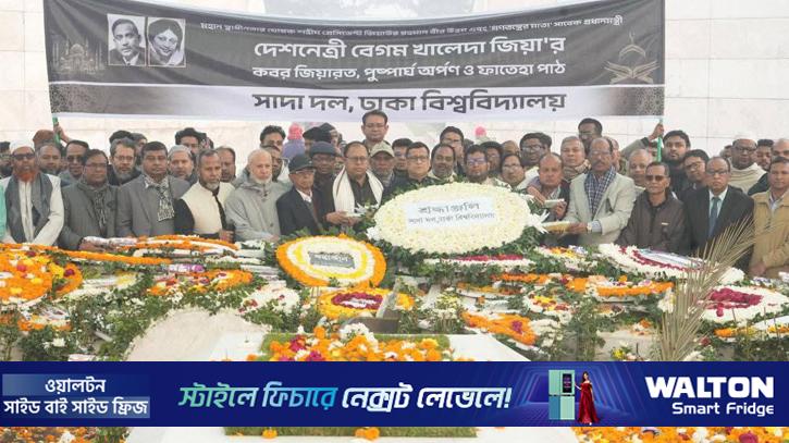 শহীদ রাষ্ট্রপতি জিয়াউর রহমান এবং প্রয়াত প্রধানমন্ত্রী খালেদা জিয়ার কবর জিয়ারত, পুষ্পার্ঘ অর্পণ ও ফাতেহা পাঠ করেছে ঢাকা বিশ্ববিদ্যালয়ের শিক্ষক সংগঠন- ঢাবি সাদা দল।