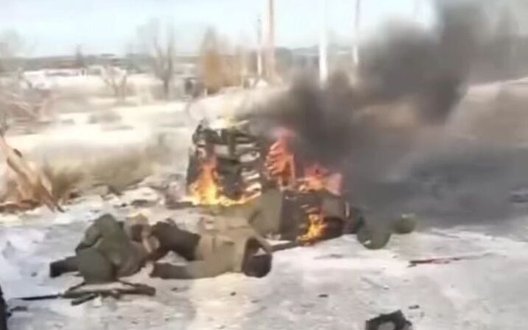 Російський військовий на оприлюднених кадрах скиглить та знімає на камеру своїх мертвих поплічників серед дороги.