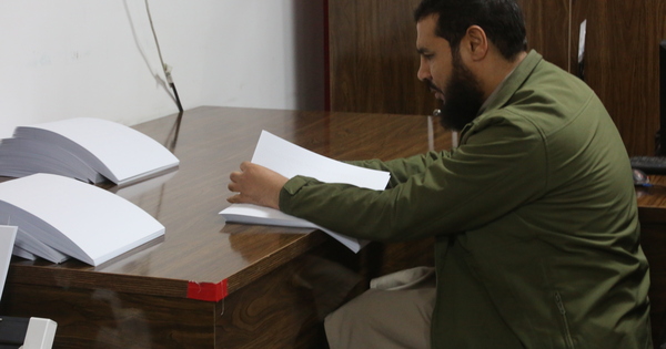 (260104) -- KABUL, Jan. 4, 2026 (Xinhua) -- A blind staff member of the National Press Braille proofreads printed Braille books in Kabul, Afghanistan, Dec. 31, 2025. TO GO WITH "Feature: Afghan blind man writes books in Braille to lighten world for visually impaired" (Photo by Saifurahman Safi/Xinhua)