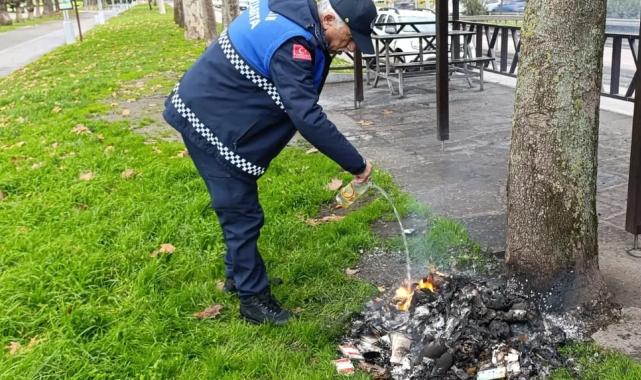 Kocaeli Büyükşehir Belediyesi Zabıta Dairesi Başkanlığı’na bağlı ekipler, devriye görevi sırasında İzmit Kuş Cenneti 1. etapta tespit ettikleri yakılmış ateşi zamanında fark ederek, hem olası yangını önledi hem de bir ağacın zarar görmesinin önüne geçti.