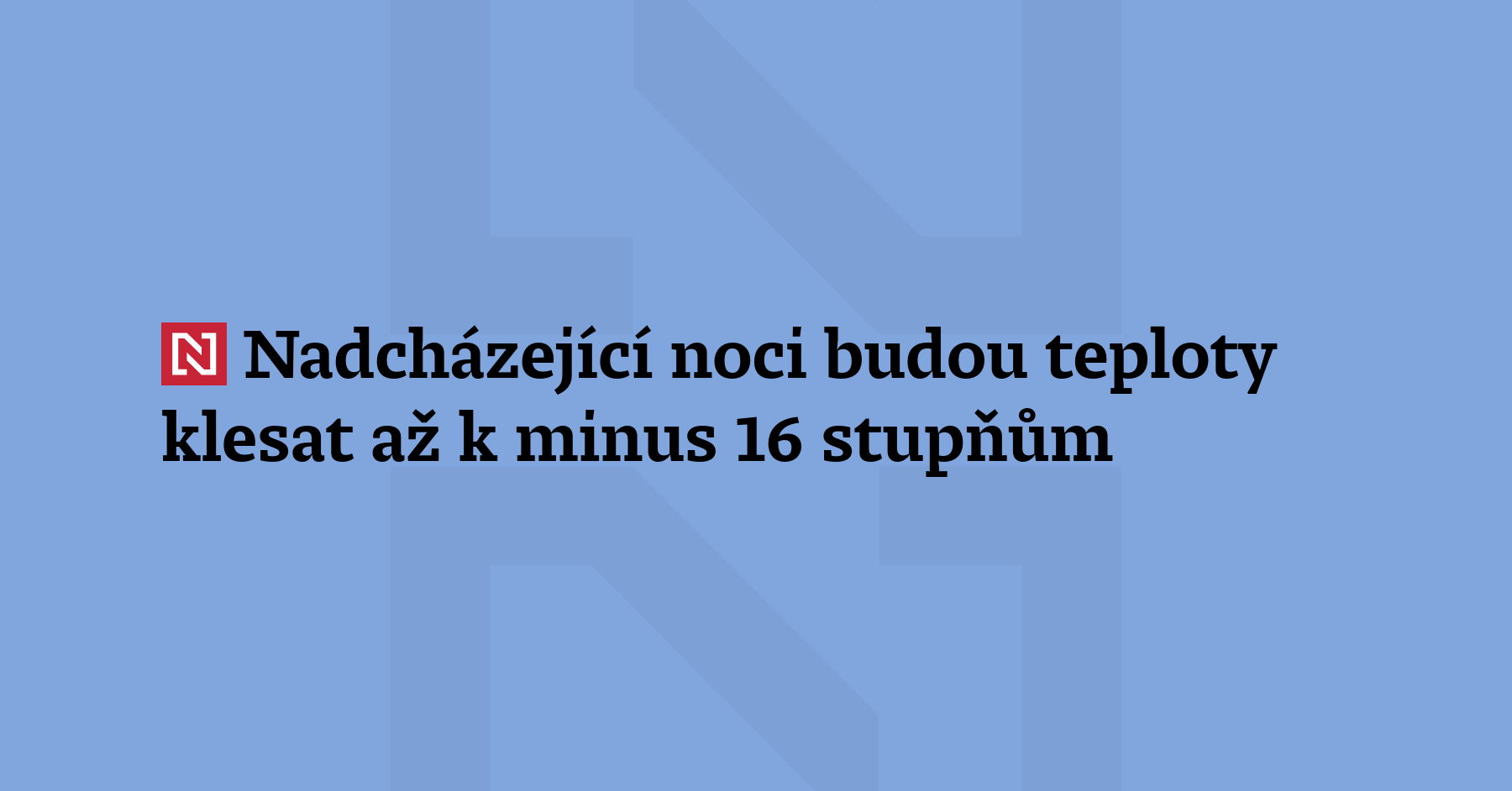 Nadcházející noci v Česku budou velmi mrazivé. Minimální teploty mohou místy klesnout 12 až 16 stupňů Celsia pod nulu. Meteorologové dnes na silné mrazy vydali výstrahu, která platí od pondělního do čtvrtečního rána pro většinu republiky. Na východě Moravy předpokládají více oblačnosti, a proto zde bude kromě pondělního rána o něco tepleji. Varování neplatí také pro většinu území Středočeského kraje […]