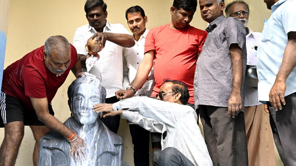 Visually impaired perform ‘palabhishekam’ to the statue of Louis Braille