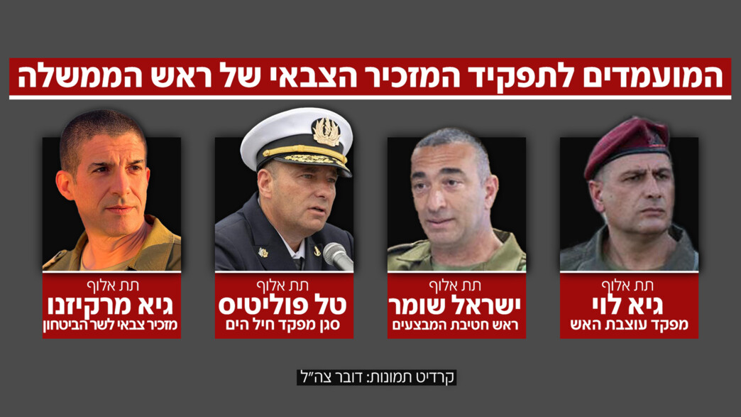 לאחר מינויו הצפוי של אלוף רומן גופמן לראשות המוסד, בקרוב יחל התהליך לבחירת מזכיר הצבאי הבא • בין המועמדים לתפקיד: תא"ל גיא לוי, תא"ל ישראל שומר, תא"ל טל פוליטיס, תא"ל גיא מרקינזו