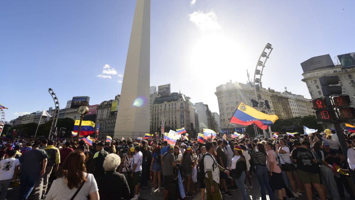 Por segundo día consecutivo, grupos de militantes venezolanos se concentran en el Obelisco para celebrar la captura de Nicolás Maduro.