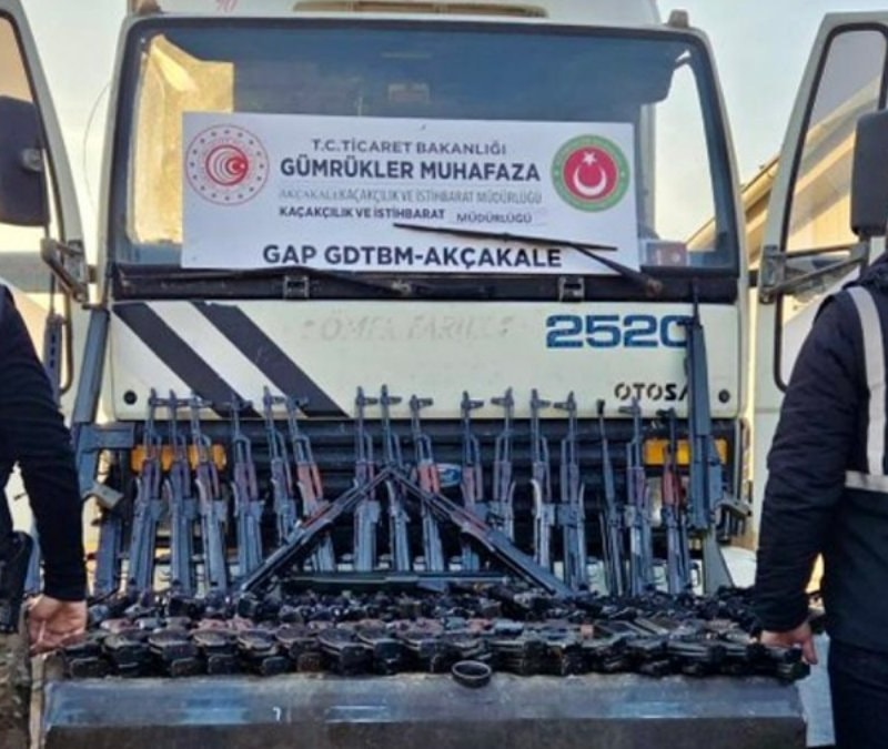 Şanlıurfa'da Suriye'den yurda giren bir kamyonun yakıt deposunda 51 uzun namlulu silah ile 41 şarjör ele geçirildi.