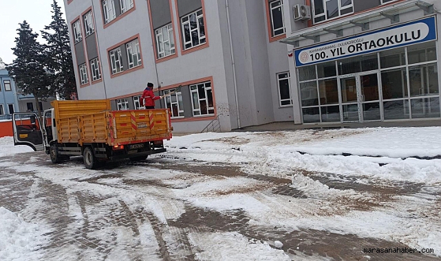 Büyükşehir Belediyesi, öğrencilerin okullarına güvenli bir şekilde ulaşabilmesi ve buzlanma nedeniyle yaşanabilecek kayma ile düşme risklerinin önüne geçmek için okul çevresi ve bahçelerinde tuzlama ve kar küreme çalışmaları gerçekleştiriyor.
