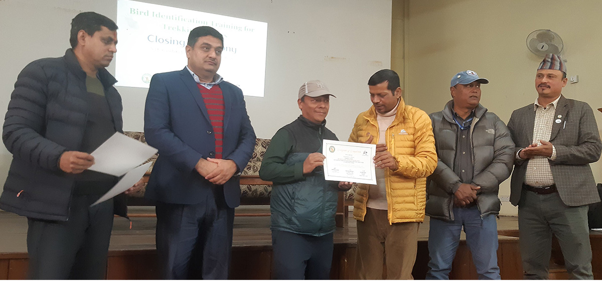 नेपाल पर्यटन बोर्ड गण्डकी प्रदेश कार्यालय र पोखरा पन्छी समाजको संयुक्त आयोजनामा पदयात्रा पथप्रदर्शकका लागि तीन दिने चरा पहिचान तालिम दिइएको छ।