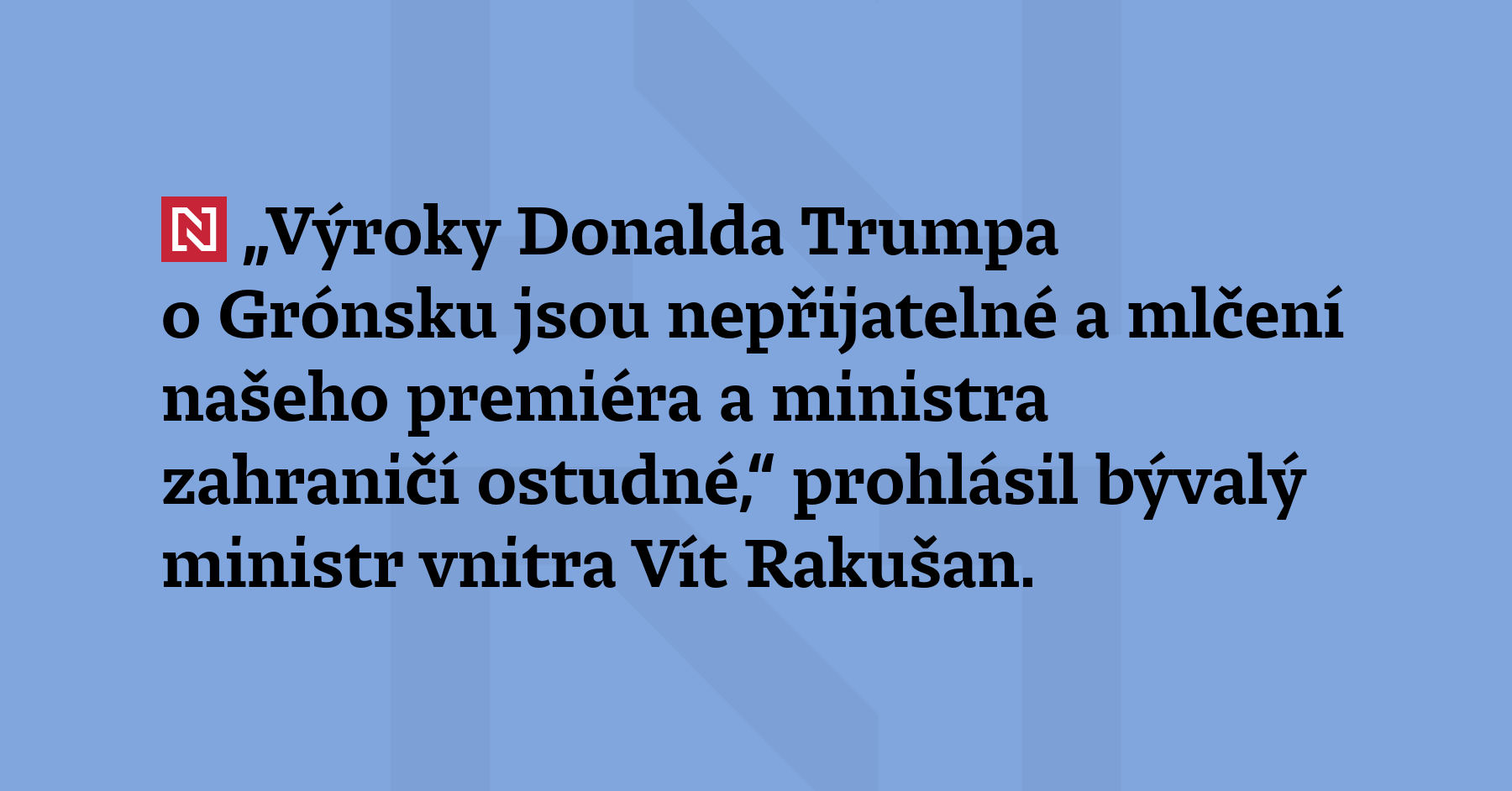 „Výroky Donalda Trumpa o Grónsku jsou nepřijatelné a mlčení našeho premiéra a ministra zahraničí ostudné,“ prohlásil bývalý ministr vnitra Vít Rakušan.