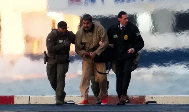 ABD operasyonuyla yakalanarak ABD'ye kaçırılan Venezuela Devlet Başkanı Nicolas Maduro ve Cilia Flores, New York’ta yoğun güvenlik önlemleri altında mahkemeye götürüldü. Elleri kelepçeli şekilde zırhlı araca bindirilen çift, helikopter ve özel kuvvetler eşliğinde başka bir noktaya nakledildi.