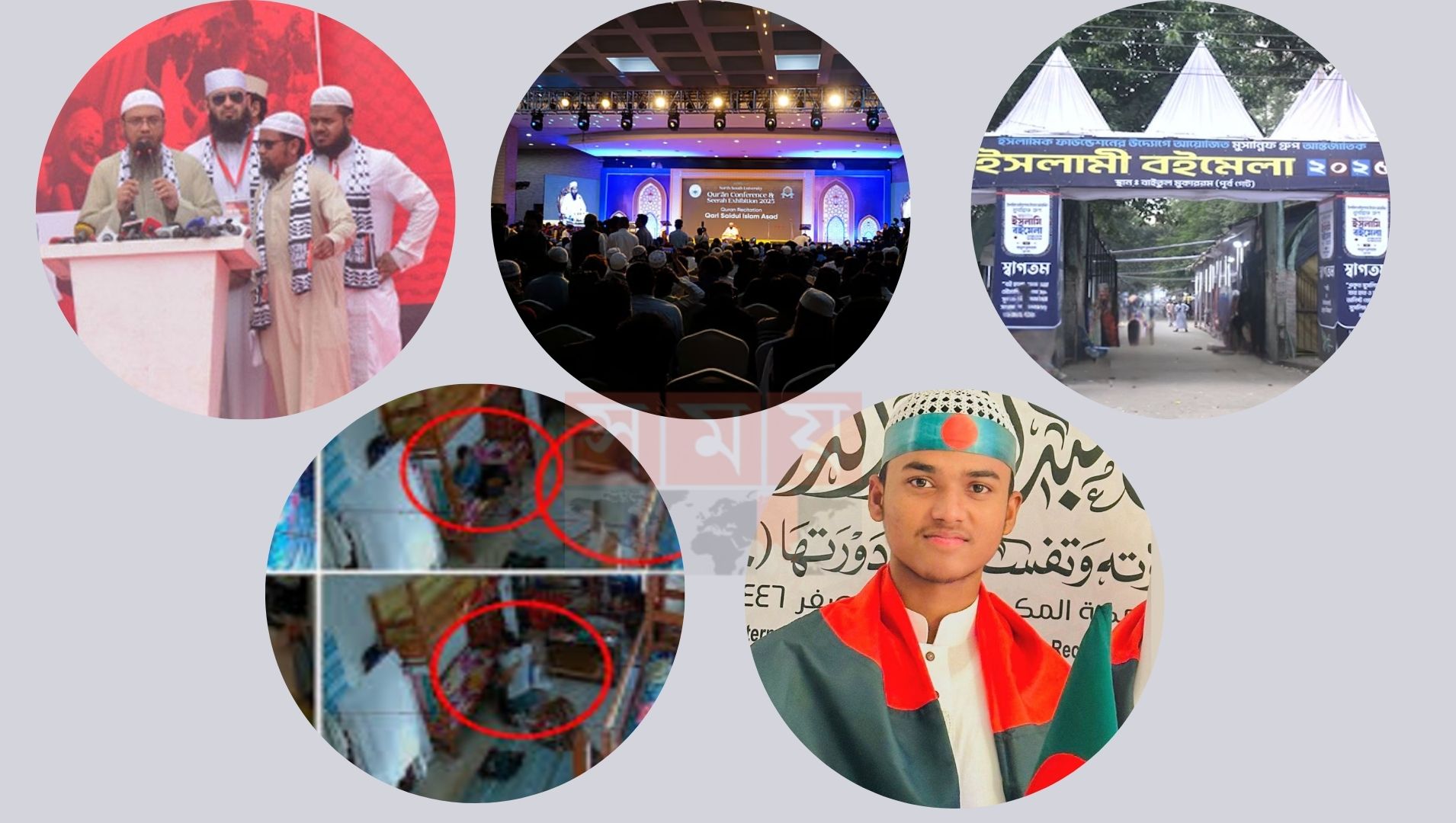 বিদায়ি ২০২৫ সাল বাংলাদেশের ইসলামি অঙ্গনের জন্য ছিল বেশ ঘটনাবহুল। মানবিকতা, প্রতিবাদ, বিশ্বজয় আর সৃজনশীল আয়োজনে বছরটি স্মরণীয় হয়ে থাকবে।চলুন দেখে নেয়া যাক এই বছরের সেরা ৫টি আলোচিত ঘটনা: ভূমিকম্পে শিক্ষার্থীদের আগলে রাখা শিক্ষক নভেম্বরের ২১ তারিখ সকালে যখন ৫.৭ মাত্রার ভূমিকম্পে কাঁপছিল ঢাকা, তখন রাজধানীর এক মাদ্রাসায় দেখা গেল মানবিক দৃশ্য। কওমি মাদ্রাসা শিক্ষক হাফেজ শফিকুল ইসলাম নিরাপদ স্থানে নিজে না পালিয়ে দুই হাতে আগলে ধরলেন তার ছাত্রদের। কোলবালিশ দিয়ে শিশুদের মাথা আড়াল করার সেই সিসিটিভি ফুটেজ নেটদুনিয়ায় কোটি মানুষের হৃদয় জয় করে নেয়। ‘মার্চ ফর গাজা’ ফিলিস্তিনের মানুষের সঙ্গে সংহতি প্রকাশ এবং গাজায় নির্মম হত্যাকাণ্ডের প্রতিবাদে ১২ এপ্রিল গণজমায়েতের আয়োজন করা হয়। এতে দেশের বিভিন্ন জায়গা থেকে মিছিল নিয়ে এসে যোগ দেন লাখ লাখ জনতা। প্যালেস্টাইন সলিডারিটি মুভমেন্ট এই গণজমায়েতের আয়োজন করে।এ সমাবেশ কেবল প্রতিবাদ নয়, এটি ইতিহাসের সামনে দেওয়া আমাদের জবাব, একটি অঙ্গীকার, একটি শপথ। আরও পড়ুন: ফিরে দেখা ২০২৫: হারালাম যেসব আলেমকে হিফজুল কোরআনে বিশ্বজয় ডিসেম্বরে মিশরের কায়রোতে ওড়ে বাংলাদেশের পতাকা। ৭০টি দেশের হাফেজদের হারিয়ে ৩২তম আন্তর্জাতিক কুরআন প্রতিযোগিতায় বিশ্বচ্যাম্পিয়ন হন হাফেজ আনাস। সৌদি আরব ও লিবিয়ার পর এটি ছিল তাঁর তৃতীয় আন্তর্জাতিক শিরোপা, যা বাংলাদেশের জন্য বয়ে আনে এক অভাবনীয় গৌরব। নর্থ সাউথ বিশ্ববিদ্যালয়ে কোরআন সম্মেলন ও সিরাহ প্রদর্শনী উচ্চশিক্ষার আঙিনায় প্রথমবারের মতো বড় পরিসরে আয়োজিত হয় ‘এনএসইউ কোরআন সম্মেলন ও সিরাহ প্রদর্শনী’। ৫ ডিসেম্বর থেকে শুরু হওয়া এই প্রদর্শনীতে মসজিদে নববির রেপ্লিকা ও ঐতিহাসিক দলিলগুলো নতুন প্রজন্মের শিক্ষার্থীদের কাছে ইসলামের প্রকৃত শিক্ষা ও রাসুলের (সা.) জীবনীকে এক আধুনিক আঙ্গিকে তুলে ধরে।এতে বায়তুল মোকাররমের খতিব মুফতি আব্দুল মালেক, শায়খ আহমাদুল্লাহ ও মাওলানা মিজানুর রহমান আজহারী বক্তব্য দেন। বায়তুল মোকাররমে ইসলামি বইমেলা সেপ্টেম্বরে বায়তুল মোকাররম চত্বরে আয়োজিত হয় এযাবৎকালের সবচেয়ে বড় ইসলামি বইমেলা। ১৪০টিরও বেশি প্রকাশনীর অংশগ্রহণ এবং প্রথমবারের মতো শিশুচত্বর ও মিডিয়া কর্নারের সংযোজন মেলাটিকে অনন্য উচ্চতায় নিয়ে যায়। দৈনিক বাংলার মোড় পর্যন্ত বিস্তৃত এই মেলা ছিল বইপ্রেমীদের উপচে পড়া ভিড়ে মুখর।