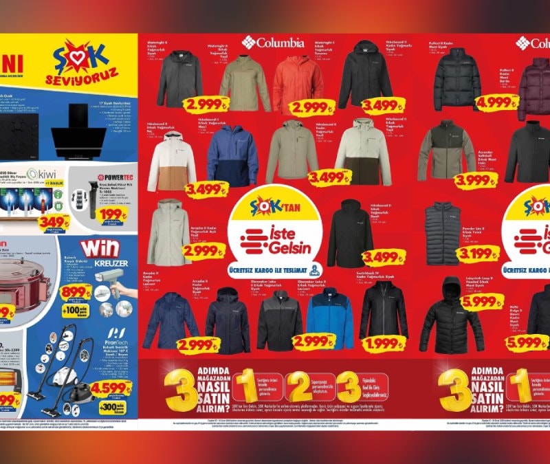 Türkiye genelinde geniş mağaza ağıyla hizmet veren ŞOK, 7–13 Ocak 2026 tarihleri arasında geçerli olacak yeni aktüel kataloğunu duyurdu. Bu hafta ŞOK’a Columbia mont çeşitleri geliyor.