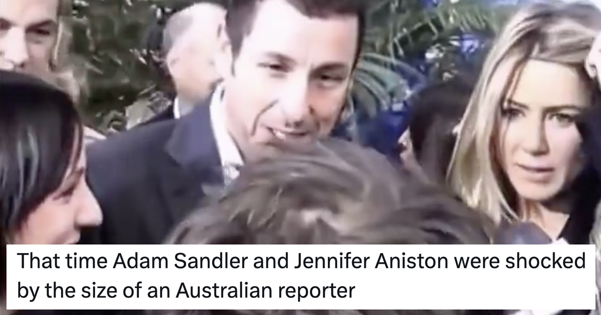 Chances are you will probably seen – of course you will have seen! – that clip of Adam Sandler and Jennifer Aniston being surprised by the size of this Australian reporter on the red carpet. It’s a moment from back in the day – 2011 to be precise – where the pair had an unexpectedly […] The post That properly iconic clip of Adam Sandler and Jennifer Aniston on the red carpet just went wildly viral again and it’s the best thing either of them’s ever been in appeared first on The Poke .