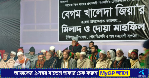 টুঙ্গিপাড়ায় খালেদা জিয়ার রুহের মাগফিরাত কামনায় দোয়া ও মিলাদ মাহফিল