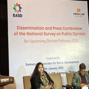 আসন্ন ত্রয়োদশ জাতীয় সংসদ নির্বাচনে দেশের ৭০ শতাংশ মানুষ বিএনপিকে ভোট দিতে চায় বলে এক জরিপ প্রতিবেদনে উঠে এসেছে। অন্যদিকে, জামায়াতে ইসলামীর পক্ষে জনমত পাওয়া গেছে ১৯ শতাংশ। বেসরকারি উন্নয়ন সংস্থা ‘এমিনেন্স অ্যাসোসিয়েটস ফর সোশ্যাল ডেভেলপমেন্ট’ (ইএএসডি) পরিচালিত জনমত জরিপে এই তথ্য উঠে এসেছে। সোমবার (৫ জানুয়ারি) বিকালে রাজধানীর ফার্মগেটে কৃষিবিদ ইনস্টিটিউশন বাংলাদেশ (কেআইবি)... বিস্তারিত