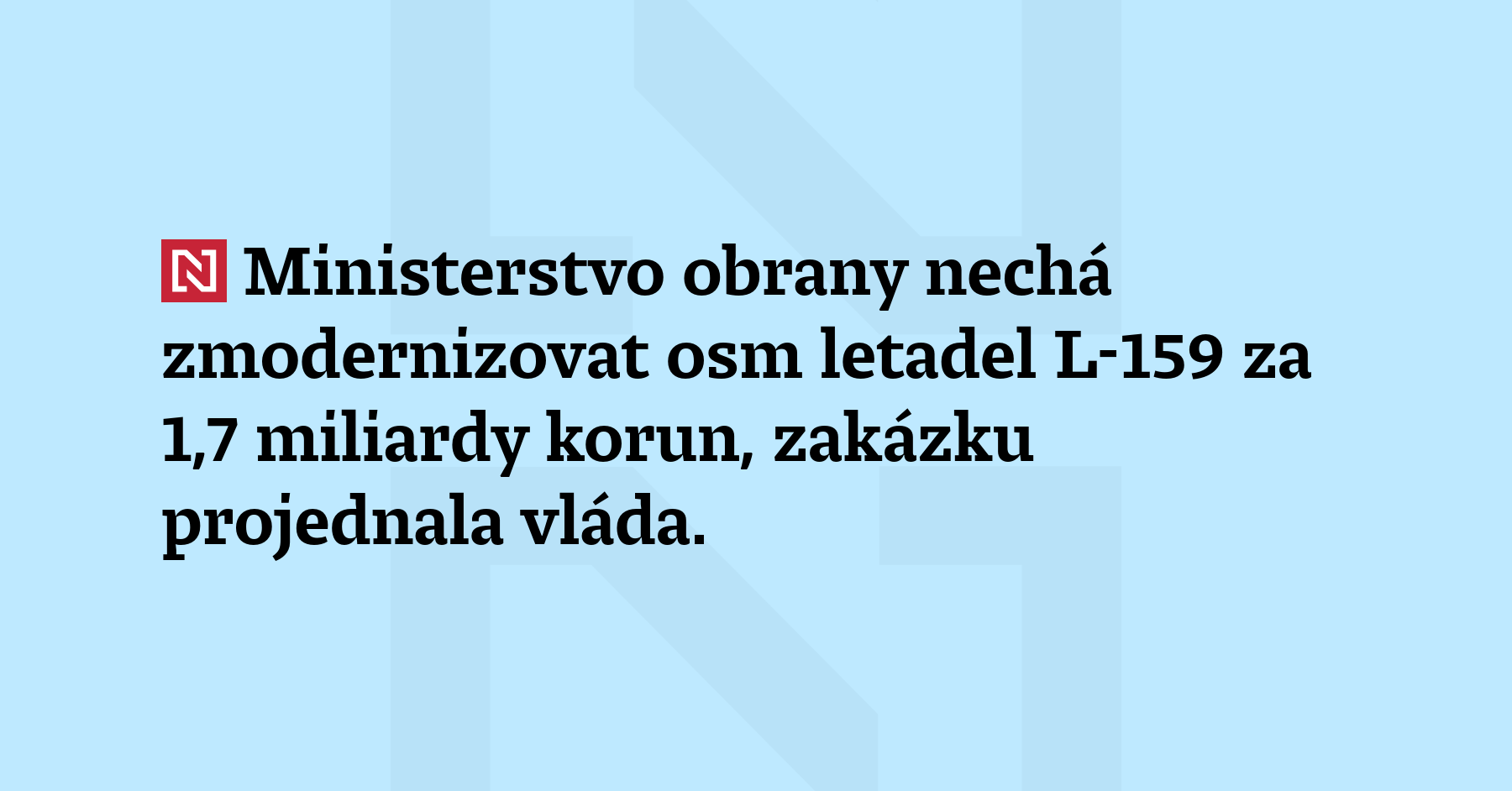 Ministerstvo obrany nechá zmodernizovat osm letadel L-159 za 1,7 miliardy korun, zakázku projednala vláda. V opravě budou od letoška do roku 2029. (ČTK)
