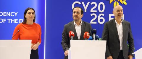 Διμερείς συναντήσεις με επικεφαλής θεσμών της ΕΕ, αρχηγούς κρατών ή εκπροσώπους τους και άλλους ξένους αξιωματούχους, θα έχει ο Πρόεδρος της Δημοκρατίας στο πλαίσιο επισκέψεων εργασίας που θα πραγματοποιήσουν στην Κύπρο υψηλοί προσκεκλημένοι, για την Τελετή Έναρξης της Κυπριακής Προεδρίας του Συμβουλίου της Ευρωπαϊκής Ένωσης, την Τετάρτη, 7 Ιανουαρίου 2026. Σε γραπτή του δήλωση ο Κυβερνητικός Εκπρόσωπος, Κωνσταντίνος Λετυμπιώτης ανέφερε πως, σύμφωνα με τον μέχρι στιγμής προγραμματισμό, ο Πρόεδρος της Δημοκρατίας αναμένεται να έχει διμερείς συναντήσεις με τον Πρόεδρο του Ευρωπαϊκού Συμβουλίου, κ. Αντόνιο Κόστα, με αντικείμενο τον συντονισμό των εργασιών επί των ευρωπαϊκών προτεραιοτήτων του εξαμήνου, στο πλαίσιο του ρόλου της Προεδρίας του Συμβουλίου για διασφάλιση της συνοχής της Ένωσης απέναντι στις διεθνείς προκλήσεις και ενίσχυση της στρατηγικής αυτονομίας, της ασφάλειας και της ανθεκτικότητας της Ευρώπης. Παράλληλα, θα πραγματοποιηθεί διμερής συνάντηση με τον Πρόεδρο της Ουκρανίας, κ. Βολοντιμίρ Ζελένσκι, σε μια συγκυρία όπου η ευρωπαϊκή στήριξη προς την Ουκρανία παραμένει καταλυτική, με έμφαση στις προσπάθειες για ειρήνη, στη διατήρηση της διεθνούς νομιμότητας και στην προστασία των θεμελιωδών αρχών που συγκροτούν το ευρωπαϊκό οικοδόμημα, αρχές στις οποίες η Κυπριακή Δημοκρατία παραμένει σταθερά προσηλωμένη, γνωρίζοντας από πρώτο χέρι τις συνέπειες της εισβολής και της συνεχιζόμενης κατοχής. Στο ίδιο πλαίσιο, ο Πρόεδρος της Δημοκρατίας θα συναντηθεί με τον Πρόεδρο του Λιβάνου, κ. Ζοζέφ Αούν, με επίκεντρο τη σταθερότητα στην Ανατολική Μεσόγειο, τις περιφερειακές εξελίξεις και την ενίσχυση των διαύλων συνεργασίας ΕΕ και Νότιας Γειτονίας. Επιπλέον, ο Πρόεδρος της Δημοκρατίας θα δεχθεί τον Υπουργό Πετρελαίου της Αιγύπτου, ο οποίος θα εκπροσωπήσει στην τελετή τον Πρόεδρο της χώρας. Μετά την ολοκλήρωση της Τελετής Έναρξης, ο Πρόεδρος της Δημοκρατίας θα παραθέσει επίσημο δείπνο προς τιμήν των επικεφαλής των αντιπροσωπειών, στο πλαίσιο του οποίου θα έχει επίσης επαφές με την Πρόεδρο της Μολδαβίας, τον Πρόεδρο του Ιράκ και άλλους υψηλόβαθμους αξιωματούχους. ΔΙΑΒΑΣΤΕ ΕΠΙΣΗΣ: Εκπρόσωποι 14 θεσμών, οργανισμών και κρατών στην τελετή έναρξης της Κυπριακής Προεδρίας του Συμβουλίου της ΕΕ Αστακός η Λευκωσία για την τελετή έναρξης της Κυπριακής Προεδρίας της ΕΕ-Κλείνουν παρκινγκ και δρόμοι, διάταγμα για απαγόρευση Drones