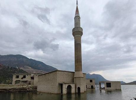 Anamur ilçesinde KKTC'ye içme ve kullanma suyu temini amacıyla Dragon Çayı üzerinde 2014'te inşa edilen Alaköprü Barajı nedeniyle tahliye edilen Akine Mahallesi, barajın su tutmaya başlamasıyla birlikte tamamen sular altında kaldı. Bir zamanlar evleri, sokakları, tarım alanları ve ibadet mekanlarıyla canlı bir yerleşim olan mahalleden bugün geriye, baraj gölünün ortasında yüksek yapılar kaldı. Bu yapılar arasında en dikkat çekeni ise Akine Mahallesi Camisi’nin minaresi oldu. Son yağışlardan sonra baraj gölünde su seviyesinin yükselmesiyle birlikte birçok ev yine suya gömüldü. Mahallenin eski sakinleri, bir zamanlar yaşadıkları evlere bakıp, anılarını tazelerken, mevsimsel su seviyesi değişimlerine bağlı olarak farklı görünümler sunan evler, Anamur’un simgelerinden biri oldu.