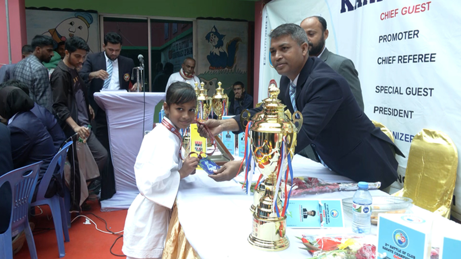 রাজধানীর বনশ্রীতে উৎসবমুখর পরিবেশে অনুষ্ঠিত হলো ‘সেকেন্ড ব্যাটেল অব ক্লাব কারাতে চ্যাম্পিয়নশিপ-২০২৬’। মার্শাল আর্টের নিপুণ ছন্দে নিজেদের মেলে ধরেছে আগামীর দক্ষ কারাতেকারা। দিনভর কাতা ও কুমিতের রোমাঞ্চকর লড়াই শেষে ১৪টি স্বর্ণপদক জিতে প্রতিযোগিতায় চ্যাম্পিয়ন হয়েছে জাপান-বাংলাদেশ মার্শাল আর্ট একাডেমি।শনিবার (৩ জানুয়ারি) বাংলাদেশ কারাতে ডেভেলপমেন্ট ফাউন্ডেশনের উদ্যোগে বনশ্রীর মমতাজ আইডিয়াল স্কুল প্রাঙ্গণে এই প্রতিযোগিতার আয়োজন করা হয়। ঢাকার ১২টি শীর্ষস্থানীয় ক্লাবের নিবন্ধিত ক্ষুদে কারাতেকারা এতে অংশ নেয়। আত্মরক্ষার কলাকৌশল প্রদর্শন এবং কাতা ও কুমিতের লড়াইয়ে দিনভর মুখরিত ছিল স্কুল প্রাঙ্গণ। কারো হাতের মুদ্রায় ফুটে উঠেছিল কাতার শৈল্পিক ভঙ্গি, আবার কারো নিশানায় ছিল প্রতিপক্ষকে ঘায়েল করার নিখুঁত পাঞ্চ। আরও পড়ুন: বরখাস্ত হওয়ার আগেই ‘বলির পাঁঠা’ ভাবছিলেন আমোরিম: বডি ল্যাঙ্গুয়েজ বিশেষজ্ঞ প্রতিযোগিতায় হাড্ডাহাড্ডি লড়াই শেষে শীর্ষ তিন ক্লাবের নাম ঘোষণা করা হয়। চ্যাম্পিয়ন হয়েছে জাপান-বাংলাদেশ মার্শাল আর্ট একাডেমি (১৪টি স্বর্ণপদক)। আর রানার্সআপ হয়েছে বাংলাদেশ ওয়াদোকাই কারাতে দো (১৩টি স্বর্ণপদক)। দ্বিতীয় রানার্সআপ দল সোতোকান কারাতে বাংলাদেশ (১২টি স্বর্ণপদক)। প্রতিযোগিতার উদ্বোধন করেন মাদানী হাসপাতালের ব্যবস্থাপনা পরিচালক ডা. মো. ইব্রাহিম মাসুম বিল্লাহ। ওয়াদো কারাতে অ্যাসোসিয়েশনের সভাপতি আব্দুল শুক্কুর আলী সিকদারের সভাপতিত্বে খেলা শেষে বিজয়ীদের হাতে পুরস্কার তুলে দেন লিয়ানা এন্ডেভর লিমিটেডের প্রেসিডেন্ট মো. শাজাহান মিয়া। আরও পড়ুন: বিশ্বকাপ খেলতে ভারতে দল পাঠানো নিরাপদ মনে করছি না: বুলবুল অনুষ্ঠানে বিশেষ অতিথি হিসেবে উপস্থিত ছিলেন সিয়াম সেলাই ঘরের ব্যবস্থাপনা পরিচালক সগীর শিকদার। এছাড়া আরও উপস্থিত ছিলেন বাংলাদেশ কারাতে ডেভেলপমেন্ট ফাউন্ডেশন ও বাংলাদেশ ওয়াদো কারাতে অ্যাসোসিয়েশনের সাধারণ সম্পাদক মো. শাহারুখ খান রাজ। এ সময় বক্তারা বলেন, এ ধরনের আয়োজন শিশুদের শারীরিক ও মানসিক বিকাশের পাশাপাশি আত্মরক্ষা শিখতে আত্মবিশ্বাসী করে তুলবে। আগামীর দক্ষ কারাতেকা তৈরিতে এমন প্রতিযোগিতা নিয়মিত আয়োজনের আশাবাদ ব্যক্ত করেন আয়োজকরা। এই আয়োজনের মিডিয়া পার্টনার সময় মিডিয়া লিমিটেড।