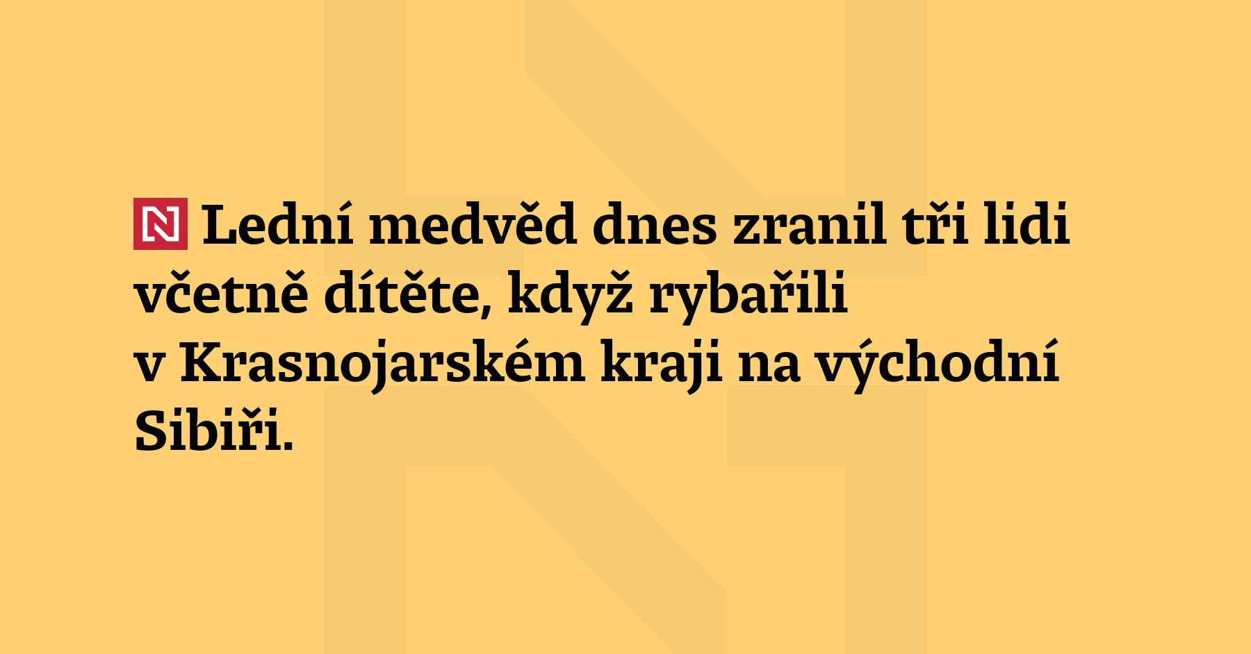 Lední medvěd dnes zranil tři lidi včetně dítěte, když rybařili v Krasnojarském kraji na východní Sibiři. Šelmu zahnal místní policista a další lidé. Zraněným byla poskytnuta pomoc a nyní se řeší přeprava nejvážněji zraněné osoby do okresní nemocnice. (ČTK)