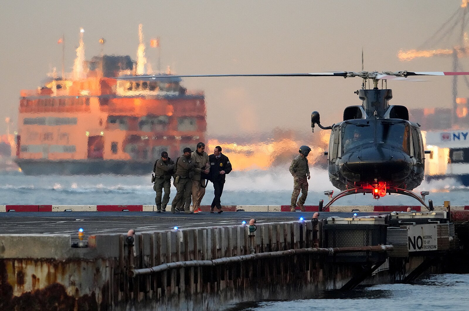 Venezuelský prezident Nicolás Maduro a jeho žena Cilia Floresová byli helikoptérou a obrněnými vozy přepraveni z věznice v newyorském Brooklynu na Manhattan do budovy federálního soudu, před který budou v pondělí v poledne místního času (18:00 SEČ) předvedeni. Manželský pár oblečený do vězeňského úboru doprovázeli ozbrojení agenti Agentury pro potírání narkotik (DEA). Maduro podle videozáběrů lehce kulhal.