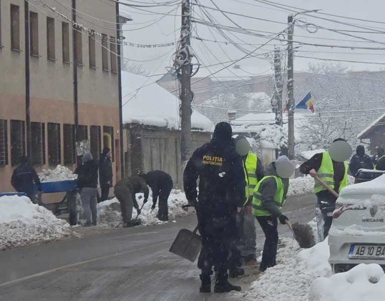 Mai mulți deţinuţi de la Penitenciarul Aiud au intervenit luni, alături de beneficiari de ajutor social şi angajaţi ai Primăriei Aiud, la deszăpezirea trotuarelor, parcărilor, podurilor şi zonelor pietonale din municipiu.