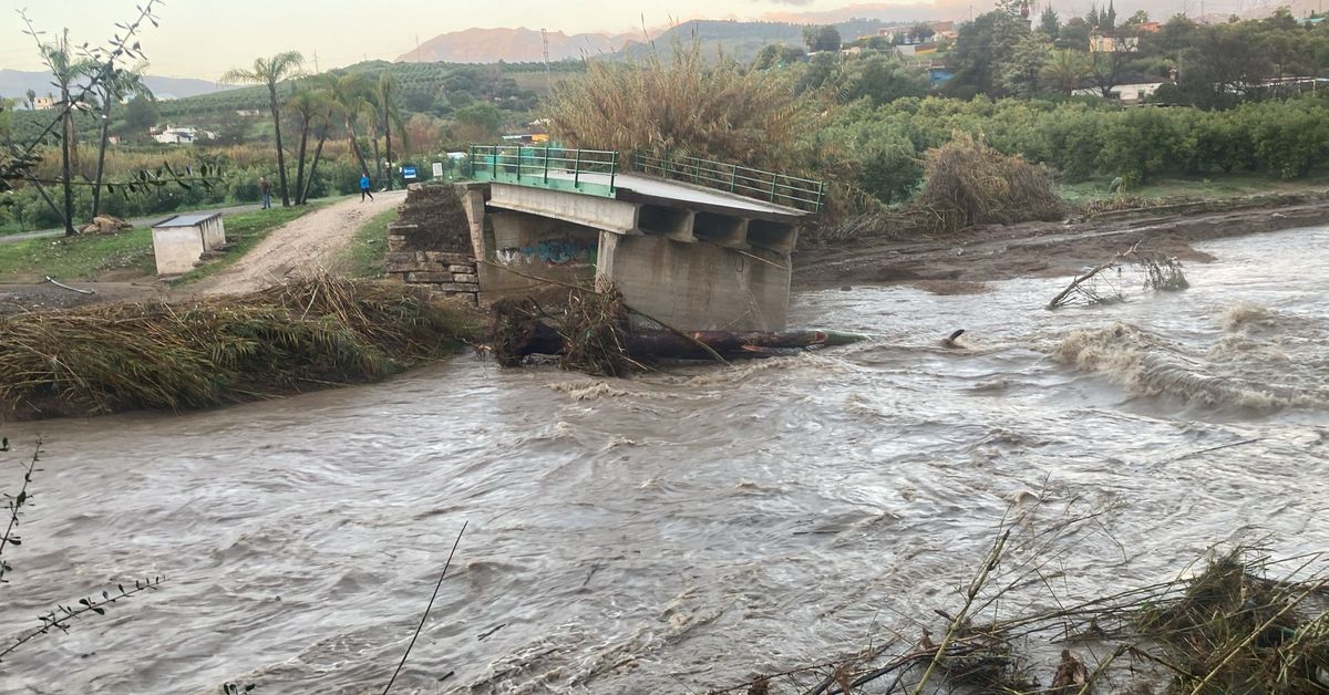 El río Grande se lleva un puente en Coín y deja incomunicadas una veintena de familias