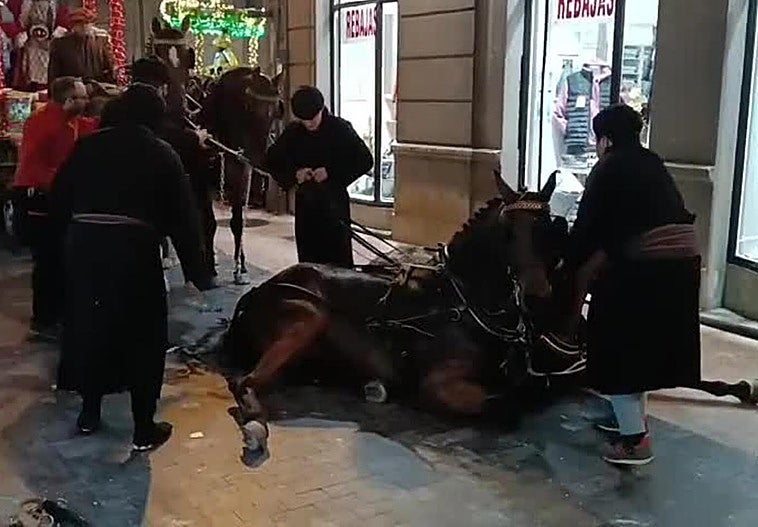 Los animales resbalaron y cayeron a su paso por la calle Ramón y Cajal, aunque pronto volvieron a ponerse de pie y continuaron su marcha