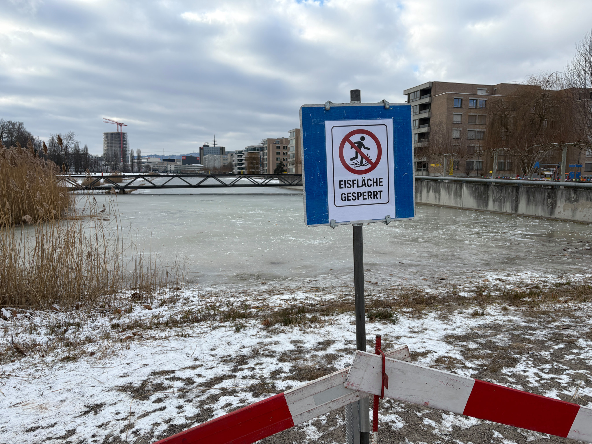 Kleinere Gewässer sind dieser Tage teils dick gefroren, was vielerorts prompt Wagemutige anlockt. Das birgt Gefahren, auch an scheinbar harmlosen Orten wie etwa im Glattpark.