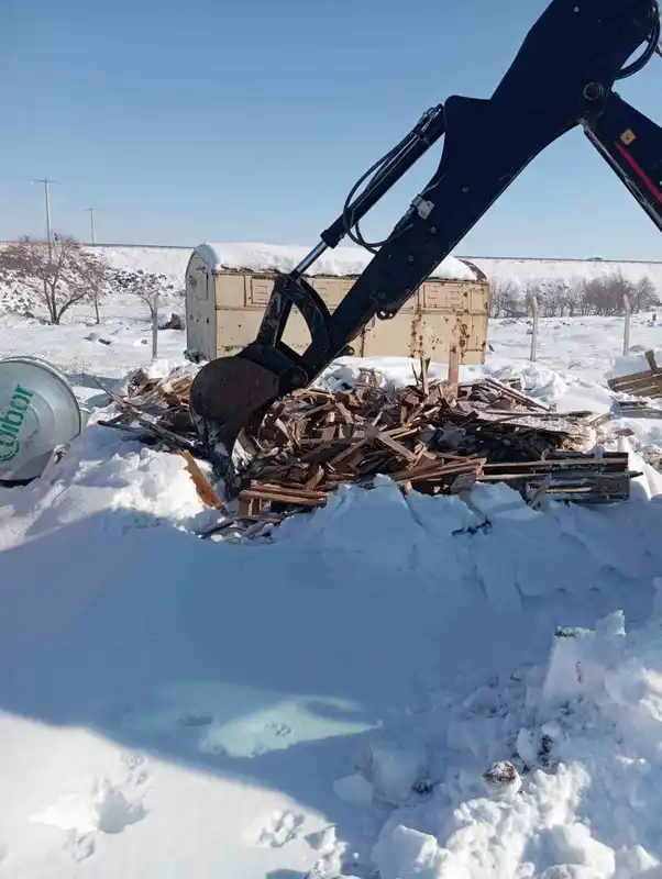 eğil belediyesi ekipleri okul için odun ve palet kırdı
