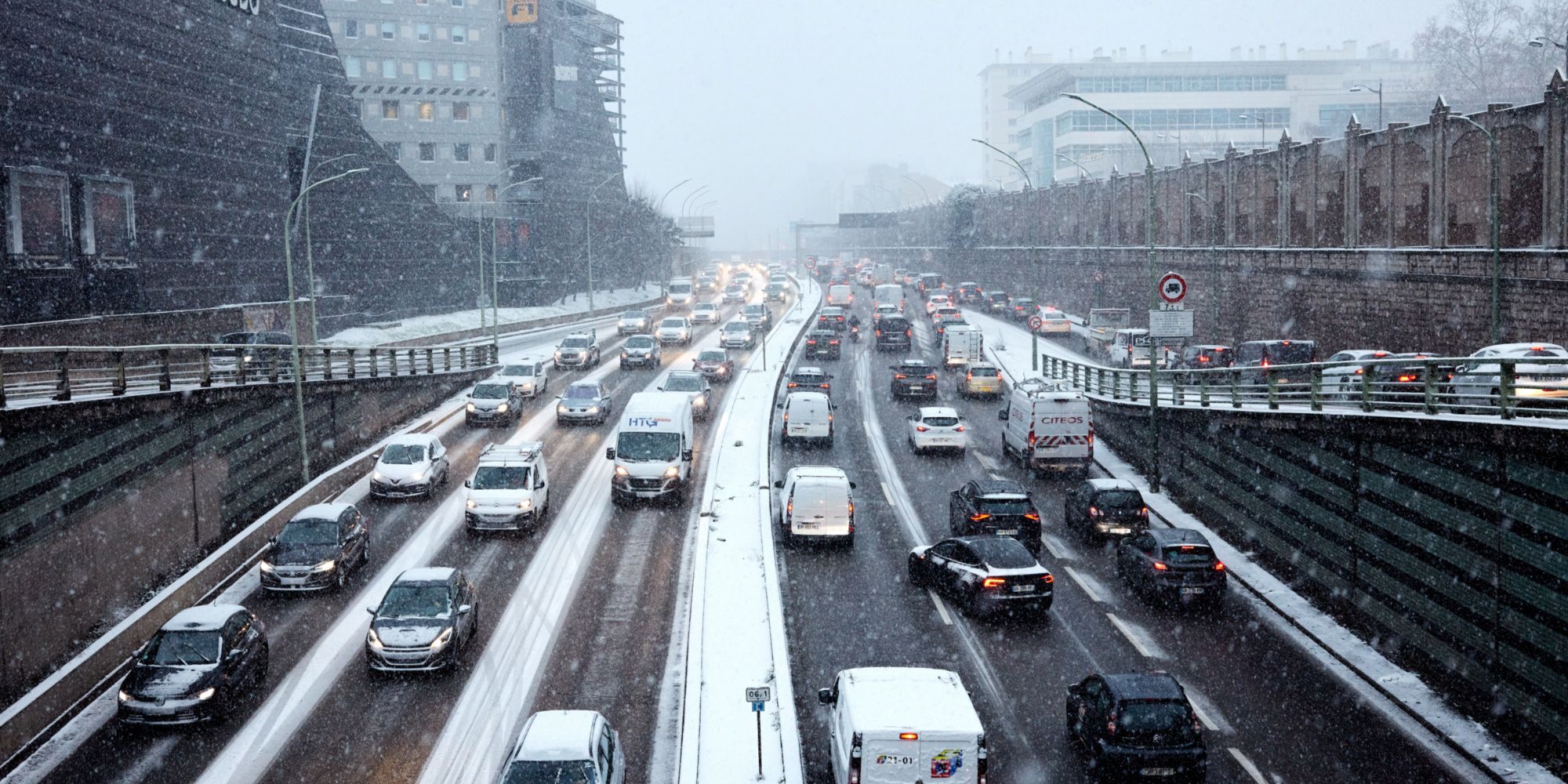 Le quart nord-ouest de la France a été paralysé par d'importantes chutes de neige lundi en fin d'après-midi. Plus de 1.000 kilomètres d'embouteillages ont été constatés en Ile-de-France, un record, tandis que de nombreux moyens de transport ont été perturbés. Le gouvernement pointe du doigt une sous-évaluation de l'événement neigeux par Météo France.
