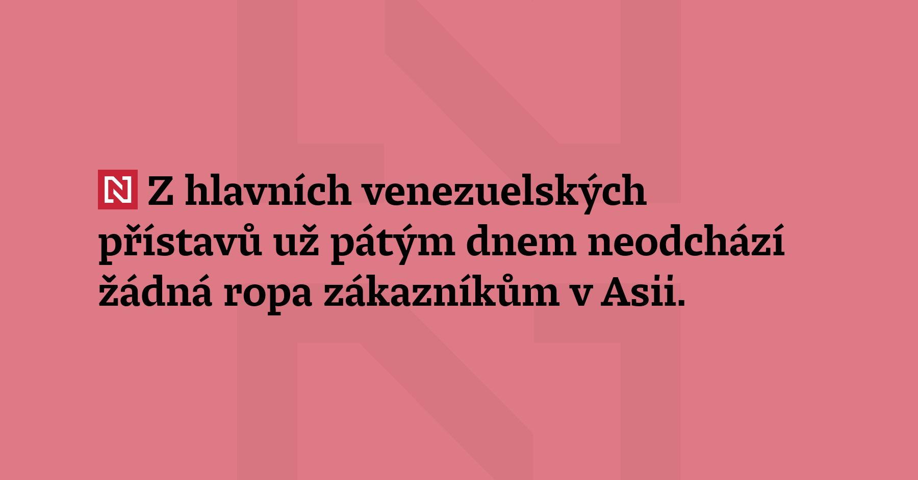 Z hlavních venezuelských přístavů už pátým dnem neodchází žádná ropa zákazníkům v Asii. Ti jsou přitom hlavními odběrateli, které dosud státní společnost PDVSA surovinou zásobovala. S odkazem na data o pohybu lodí o tom dnes informuje agentura Reuters. Na vývoz ropy z Venezuely se vztahuje americké embargo. Z Venezuely nadále vyváží americká společnost Chevron, která posílá ropu na tankerech do Spojených států. […]