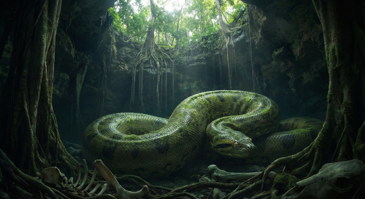 Sucuri gigante vive isolada em buraco com mais de 100 metros de profundidade