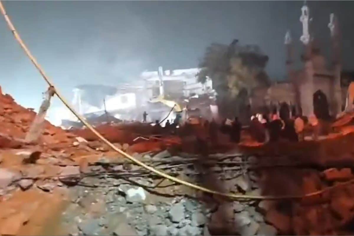 As the demolition began, a large number of people gathered outside the mosque, with some raising slogans against the action.