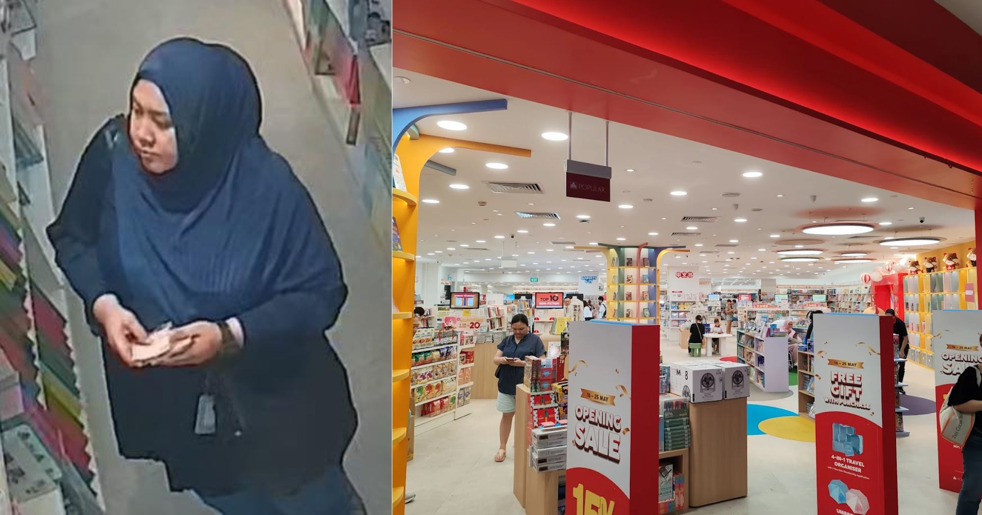 S'pore police looking for woman to assist with Waterway Point Popular Bookstore shop theft investigations
