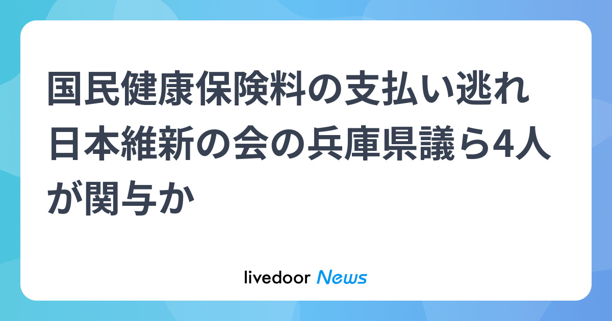 国民健康保険料の支払い逃れ 日本維新の会の兵庫県議ら4人が関与か