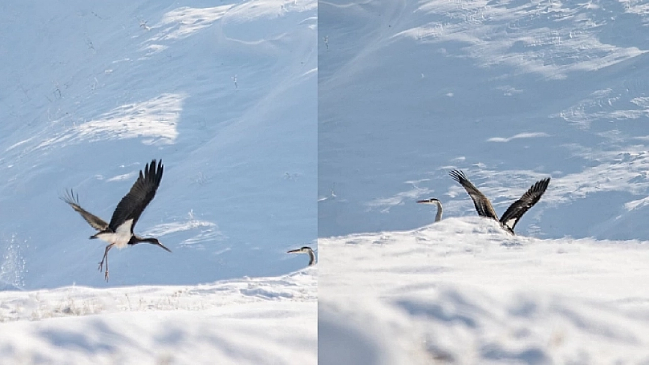 Göç etmeyi unutan kara leylekler, Elazığ’ın Karakoçan ilçesinde fotoğraflandı.