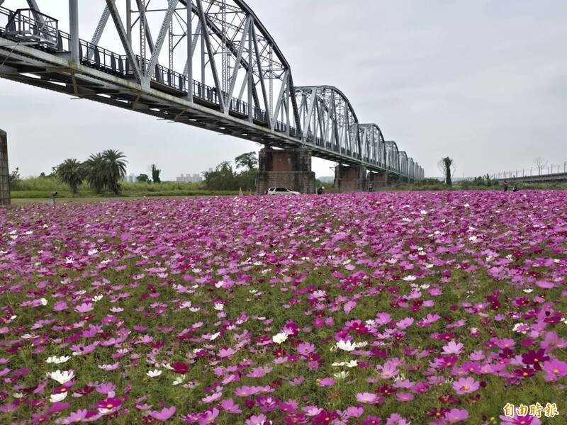 屏東限定夢幻色!屏東舊鐵橋 粉紅波斯菊盛開