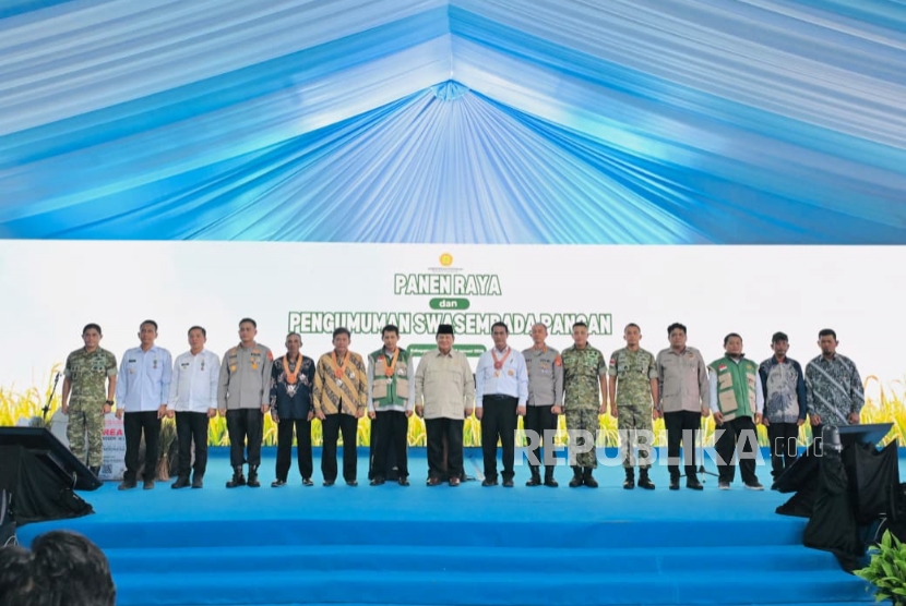 REPUBLIKA.CO.ID, KARAWANG -- Presiden Prabowo Subianto menghadiri panen raya di Desa Kertamukti, Kabupaten Karawang, Jawa Barat, Rabu (7/1/2026). Dia pun menyatakan tekadnya untuk mewujudkan swasembada pangan tidak hanya untuk...