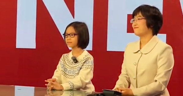 Hình ảnh bé gái 9 tuổi dẫn bản tin tiếng Anh tại trường quay VTV với phong thái chững chạc khiến cộng đồng mạng bất ngờ và thích thú.