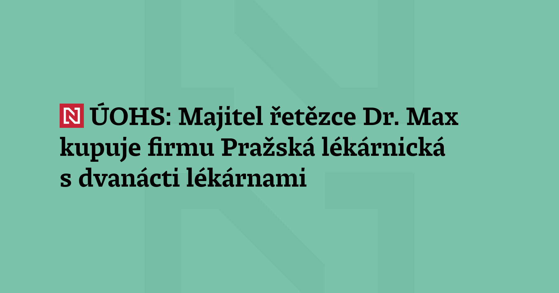 Majitel řetězce lékáren Dr.Max kupuje firmu Pražská lékárnická a jejím prostřednictvím také dvanáct lékáren. Spojení společností posuzuje Úřad pro ochranu hospodářské soutěže. Informoval o tom na svém webu. Řetězec lékáren Dr. Max vlastní brněnská společnost Česká Lékárna Holding (ČLH), již kontroluje skupina Penta. Majitelem Pražské lékárnické je firma Česká lékárnická. (ČTK)