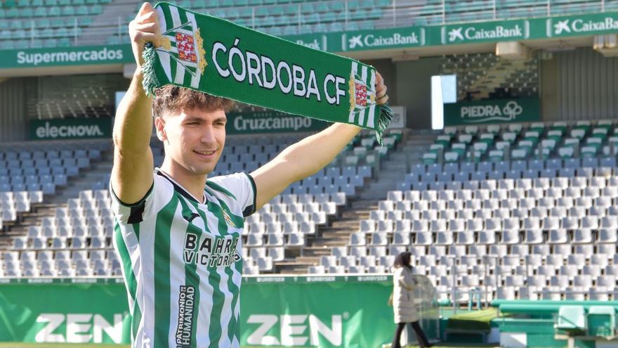 El primer fichaje del Córdoba CF en el mercado invernal, Diego Percan, pasó ayer por la sala de prensa del Bahrein Victorious Nuevo Arcángel para llevar a cabo su presentación oficial. El leonés de 24 años, que ya debutó con los blanquiverdes en la victoria de su nuevo equipo por 2-0 ante el Burgos CF, ha reconocido que “nunca olvidaré mi estreno en Segunda con el Córdoba CF”. El punta leonés, formado en la Cultural Leonesa y el Barça, ha llegado a la entidad cordobesa procedente del Arka Gydnia polaco. Con los cordobeses ha firmado hasta el 30 de junio del 2027.