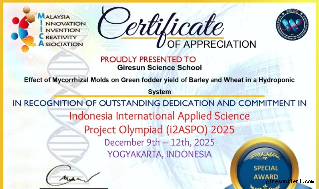 Giresun Fen Lisesi öğrencileri, uluslararası bir proje yarışmasında elde ettikleri başarıyla gurur kaynağı oldu.