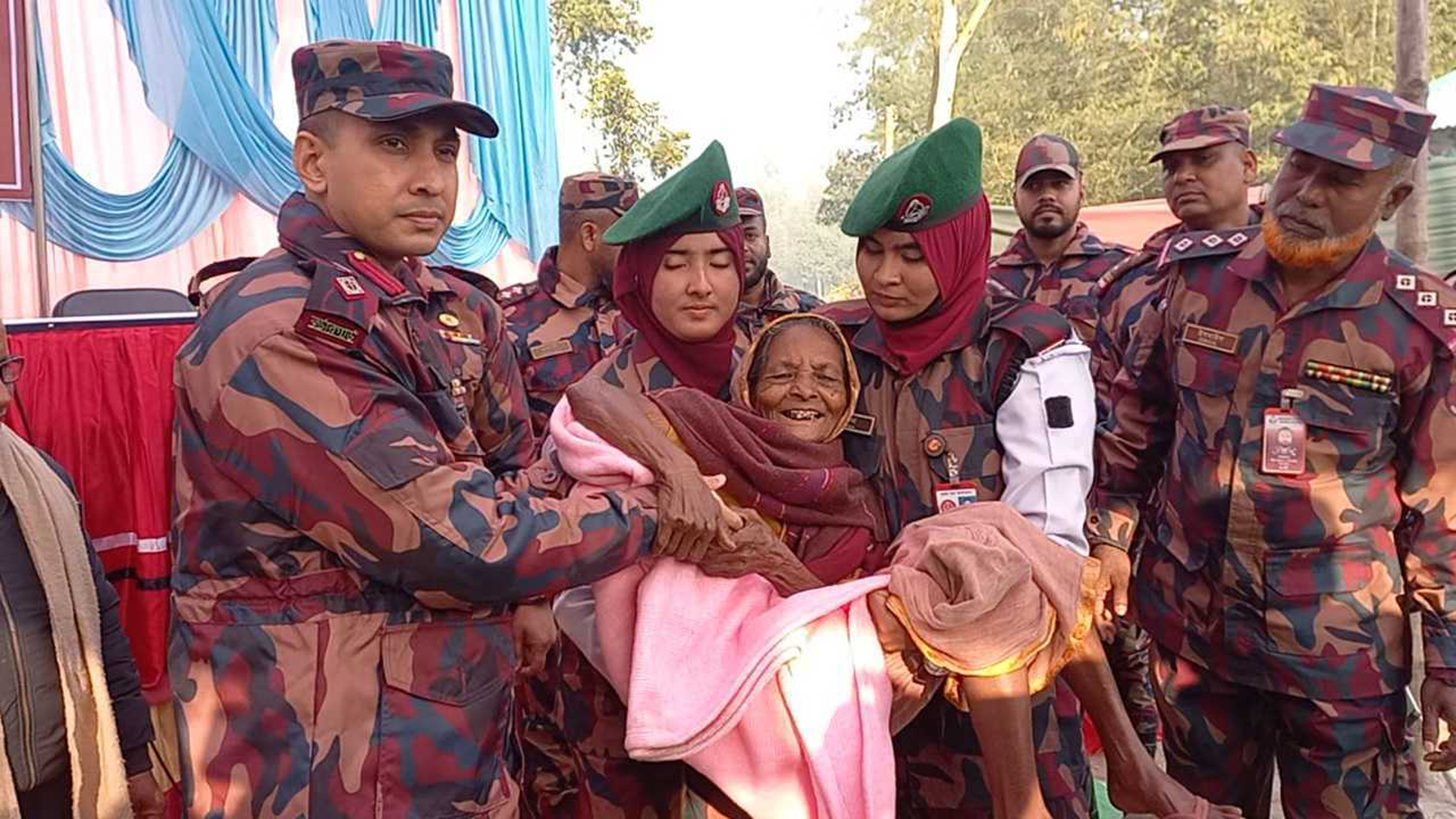 পঞ্চগড়ের সীমান্ত এলাকার পাঁচ শতাধিক অসহায় শীতার্ত ও দুস্থ মানুষের মাঝে উপহার হিসেবে শীতবস্ত্র বিতরণ করেছে পঞ্চগড়-১৮ বিজিবি ব্যাটালিয়ন।বুধবার (৭ জানুয়ারি) বিকেলে পঞ্চগড়ের আটোয়ারী উপজেলার সীমান্তের পুরাতন আটোয়ারী সরকারি প্রাথমিক বিদ্যালয় মাঠে শীতার্ত মানুষের হাতে শীতবস্ত্র হিসেবে কম্বল তুলে দেন ব্যাটালিয়নের অধিনায়ক লেফটেন্যান্ট কর্নেল আব্দুল্লাহ মোহাম্মদ কায়েস। জানা গেছে, সীমান্ত সুরক্ষার পাশাপাশি চোরাচালান দমন, আইনশৃঙ্খলা রক্ষার দায়িত্ব পালন সহ জনকল্যাণমূলক কার্যক্রম এবং বিভিন্ন দুর্যোগময় মুহূর্তে জনসাধারণের সেবায় সীমান্তের মানুষের পাশে দাঁড়াতে শীতবস্তু বিতরণের এই উদ্যোগ গ্রহণ করা হয়েছে। পর্যায়ক্রমে ১০০০ এরও অধিক মানুষের মাঝে এই শীতবস্ত্র বিতরণ করা হবে বলে জানান ব্যাটালিয়নের সদস্যরা।আরও পড়ুন: পঞ্চগড়ে মাঝারি শৈত্যপ্রবাহ, তাপমাত্রা ৭.৫ ডিগ্রির ঘরেব্যাটালিয়নের অধিনায়ক লেফটেন্যান্ট কর্নেল আব্দুল্লাহ মোহাম্মদ কায়েস বলেন, বর্ডার গার্ড বাংলাদেশ ২৩০ বছরের একটি ঐতিহ্যবাহী বাহিনী। বর্ডার গার্ড বাংলাদেশ সীমান্ত সুরক্ষা, চোরাচালান দমন, আইন-শৃঙ্খলা রক্ষার দায়িত্ব পালন সহ জনকল্যাণমূলক কার্যক্রম এবং বিভিন্ন দুর্যোগময় মুহূর্তে জনসাধারণের সেবায় নিরলস ভাবে কাজ করে যাচ্ছে। এরই ধারাবাহিকতায় এই শীতবস্তু বিতরণ অনুষ্ঠানের আয়োজন করা হয়েছে। পঞ্চগড়-১৮ বিজিবি ব্যাটালিয়নের প্রতিটি বিজিবি সদস্য সীমান্ত সুরক্ষায় নিরাপত্তা ও আস্থার প্রতীক হিসেবে দায়িত্ব পালন করে যাচ্ছে। আইনশৃঙ্খলা নিয়ন্ত্রণে বিজিবি কার্যকর ভূমিকা রাখছে, যার মাধ্যমে বিজিবি দেশের সর্বসাধারণের আস্থা অর্জন করতে সক্ষম হয়েছে। এসময় এ সময় পঞ্চগড়-১৮ বিজিবি ব্যাটালিয়নের উপ অধিনায়ক মেজর রিয়াদ মোরশেদ, পুরাতন আটোয়ারী সরকারী প্রাথমিক বিদ্যালয়ের প্রধান শিক্ষক সহ বিভিন্ন গণমান্য ব্যক্তি ও গণমাধ্যম কর্মীরা।
