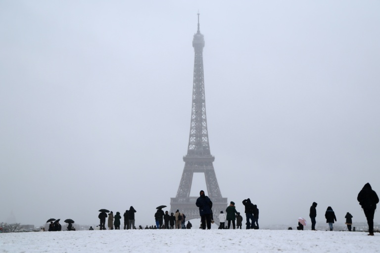 A Frankräich huet d'Wieder weiderhin e staarken Impakt op den Trafic. Iwwerdeem maache Biller vu Paräis am Schnéi op de soziale Medien d'Ronn.